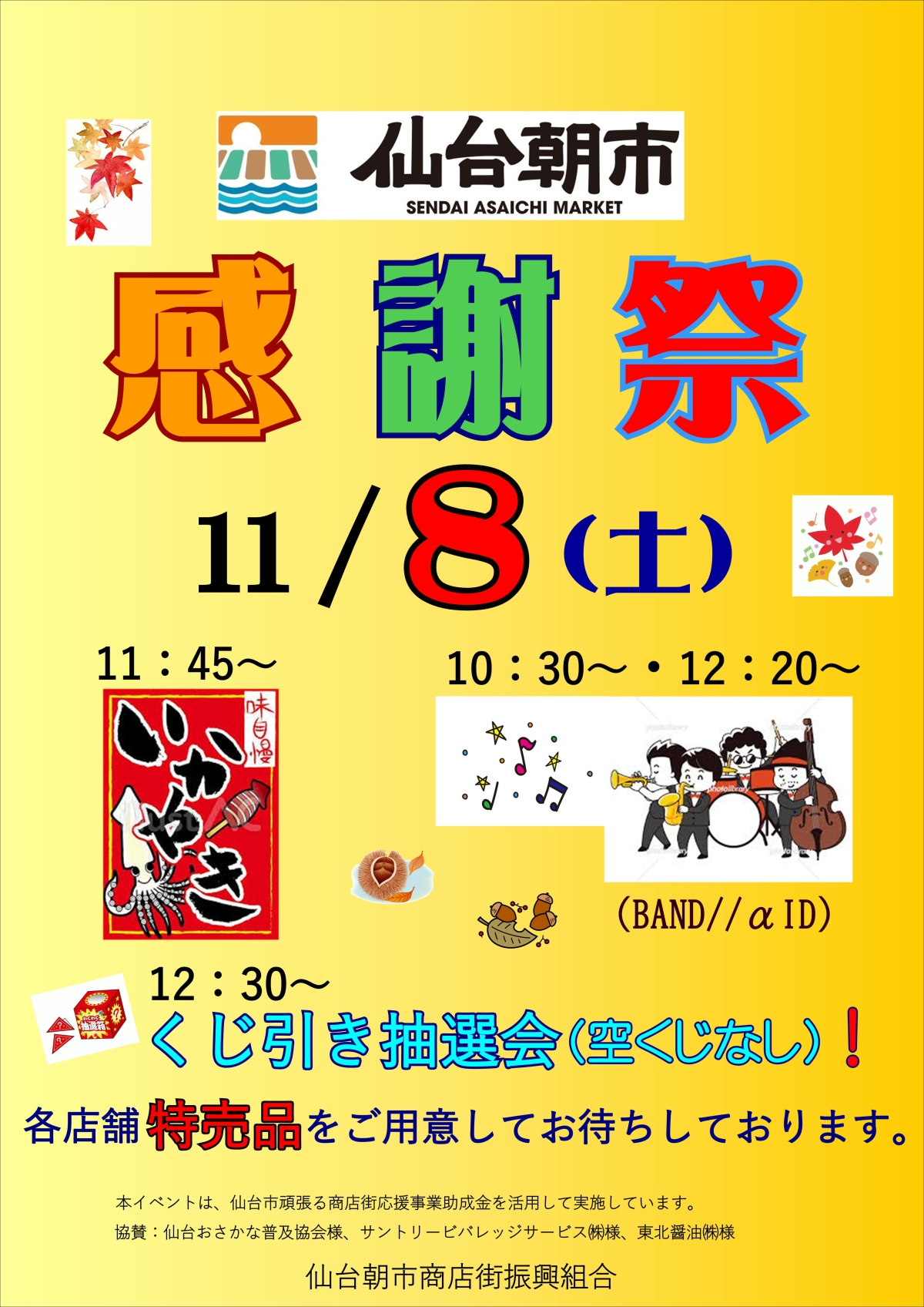 11月8日(土)「仙台朝市感謝祭」開催します!